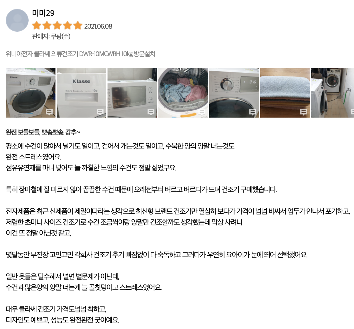 위니아의 클라쎄 건조기(10kg) 제품이 선정되었습니다.